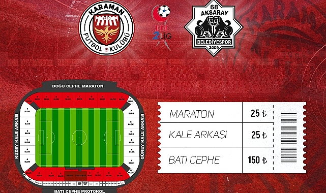 Stadyumdaki Batı protokol tribünü 150, Maraton ve kale arkası tribünlerinin biletleri ise 25 liradan satışa sunuldu. Daha önce 60 liradan satışa çıkan Maraton tribünün bilet fiyatlarında indirime giden kulüp Aksaray maçında bu tribünlerde maçı izlemek isteyen Karamanlılara 25 liradan bilet satacak.