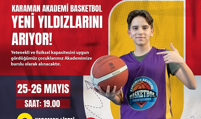Karaman Akademi Basketbol Spor Kulübü’nden yapılan açıklamada, 2011 ile 2016 doğumlu kız ve erkeklerin katılacağı seçmelerde fiziki yeterlilikleri ve yeteneklerine göre sporculara basketbol bursu verileceği açıklandı. Mayıs ayı içerisinde yapılacak altyapı seçmelerine 2011-2016 doğumlu tüm çocuklar davet edildi.