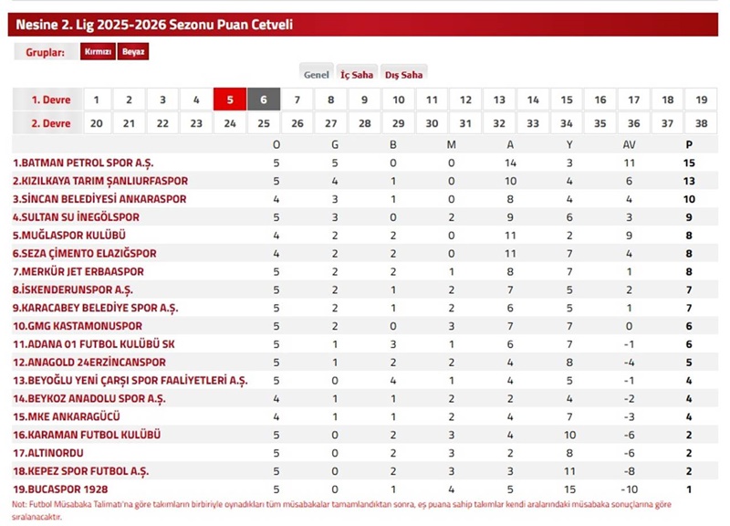 Nesine 2.Lig Beyaz Grupta 5.hafta maçları oynanan mücadelelerle tamamlandı.