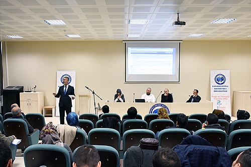 Geleceğin bilim adamlarını yetiştirmek için öğrencilerde merak duygusunu uyandırarak bilimsel araştırmanın yöntem ve tekniklerini öğretmeyi amaçlayan 4006 Bilim Fuarlarına ilişkin İl Koordinatörü KMÜ Öğretim Üyesi Doç. Dr. Murat Yıldız, KMÜ Öğretim Üyesi Doç. Dr. Serhat Aydın, İl Milli Eğitim Müdürlüğü AR-GE TÜBİTAK Temsilcisi Esma Özgünay, İl Milli Eğitim Müdürlüğü MEBBİS Yöneticisi Ömer Koçak, Yunus Emre Ortaokulu Müdür Yardımcısı Kadir Yetiş ve Temizel-Ünlü Mesleki ve Teknik Anadolu Lisesi Öğretmeni Hakan Atçeken tarafından proje yürütücüsü öğretmenlere Karamanoğlu Mehmetbey Eğitim Fakültesi Konferans Salonunda bilgilendirme yapıldı.