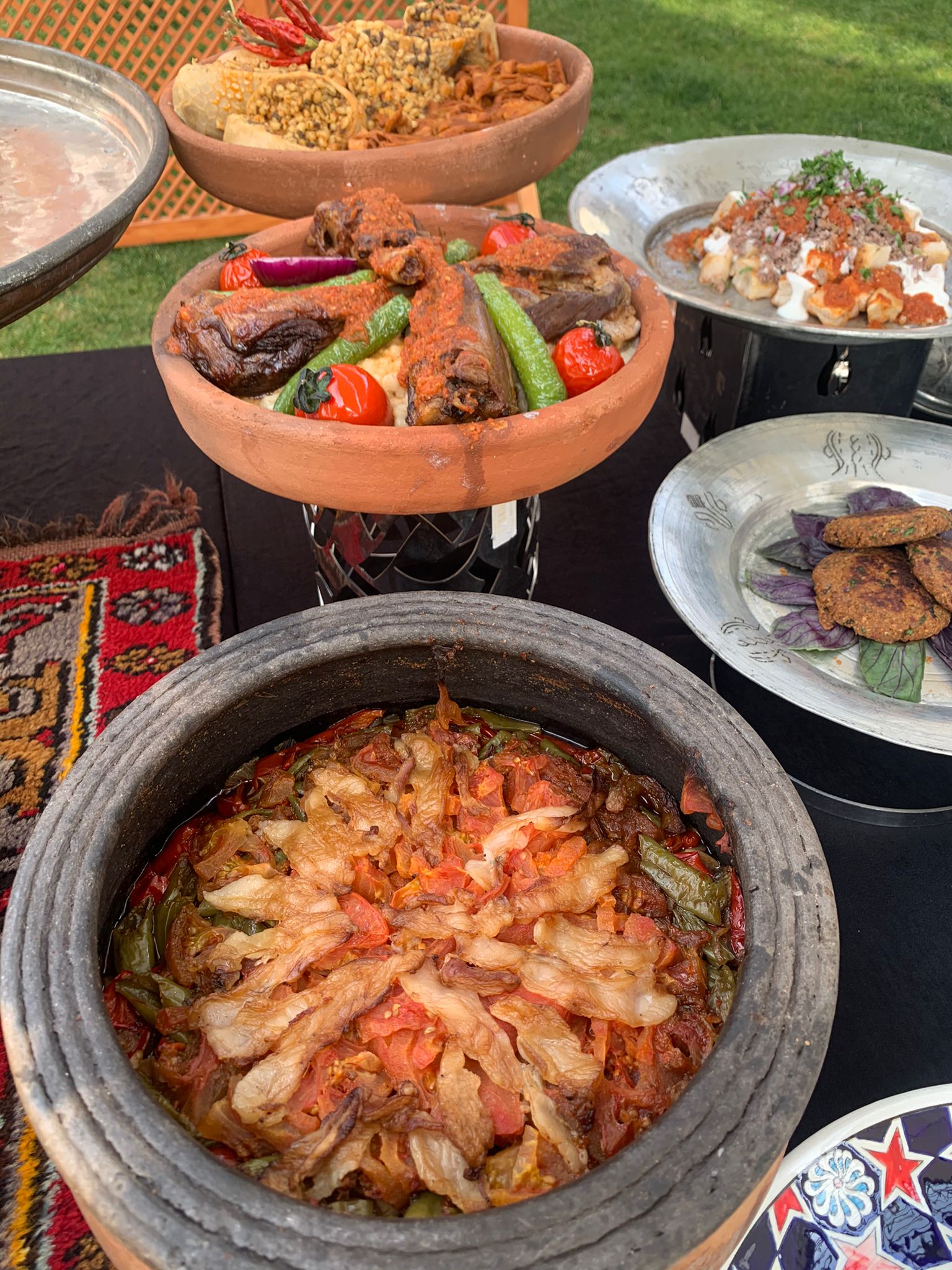 Patlıcan kebabı, Bici dolması, Ciğerli topalak, Şebit pilav, Nahnili keşkek, Nahni, Erikli