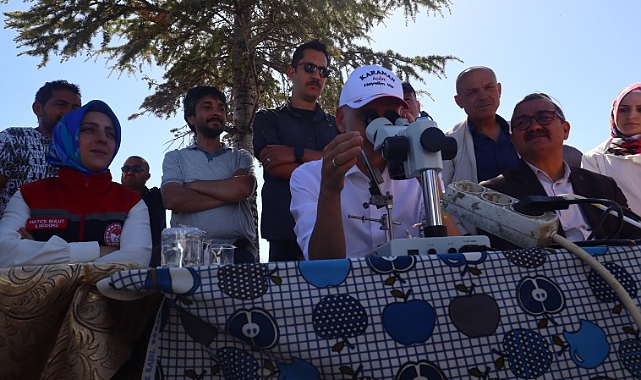 Uygulama eğitiminde arıcıları Karaman Valisi Mehmet Fatih Çiçekli, Tarım ve Orman İl Müdürü Hatice Bulut ve TKDK İl Koordinatörü Özgür Öztürk ile beraber ziyaret etti.