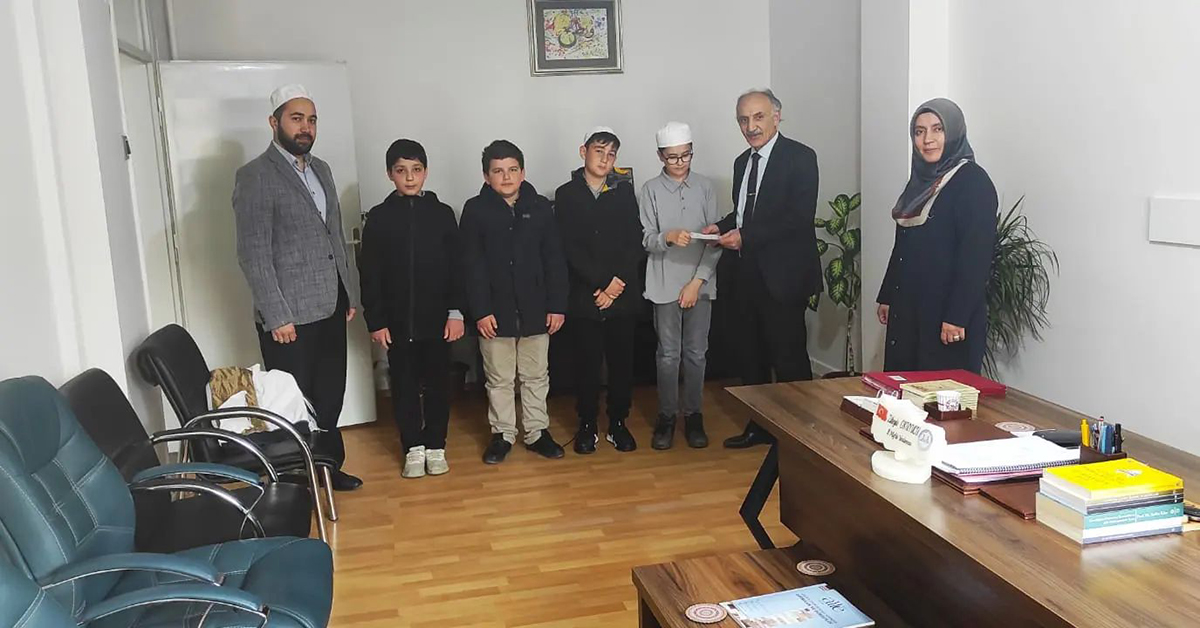 Hafızlık eğitimi verilen 7. sınıf öğrencileri harçlıklarını birleştirerek, Karaman Müftülüğü ve Türkiye Diyanet Vakfı Karaman Şubesinin depremzede ailelere yönelik gıda kolisi kampanyasına toplam 7500 TL bağışladılar.